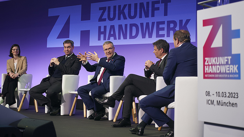 Vom 8. bis 10. März 2023 fand mit ZUKUNFT HANDWERK das erste und größte Kongress- und Eventformat aus dem Handwerk für das Handwerk statt. Es rückte wichtige Zukunftsthemen wie Nachhaltigkeit und Digitalisierung in den Fokus. Im Mittelpunkt stand die dreitägige Live-Veranstaltung im Internationalen Congress Center München (ICM), die digital flankiert und mit hochkarätigen Expertinnen und Experten umgesetzt wurde. Schirmherr war der Bundesminister für Wirtschaft und Klimaschutz, Dr. Robert Habeck.